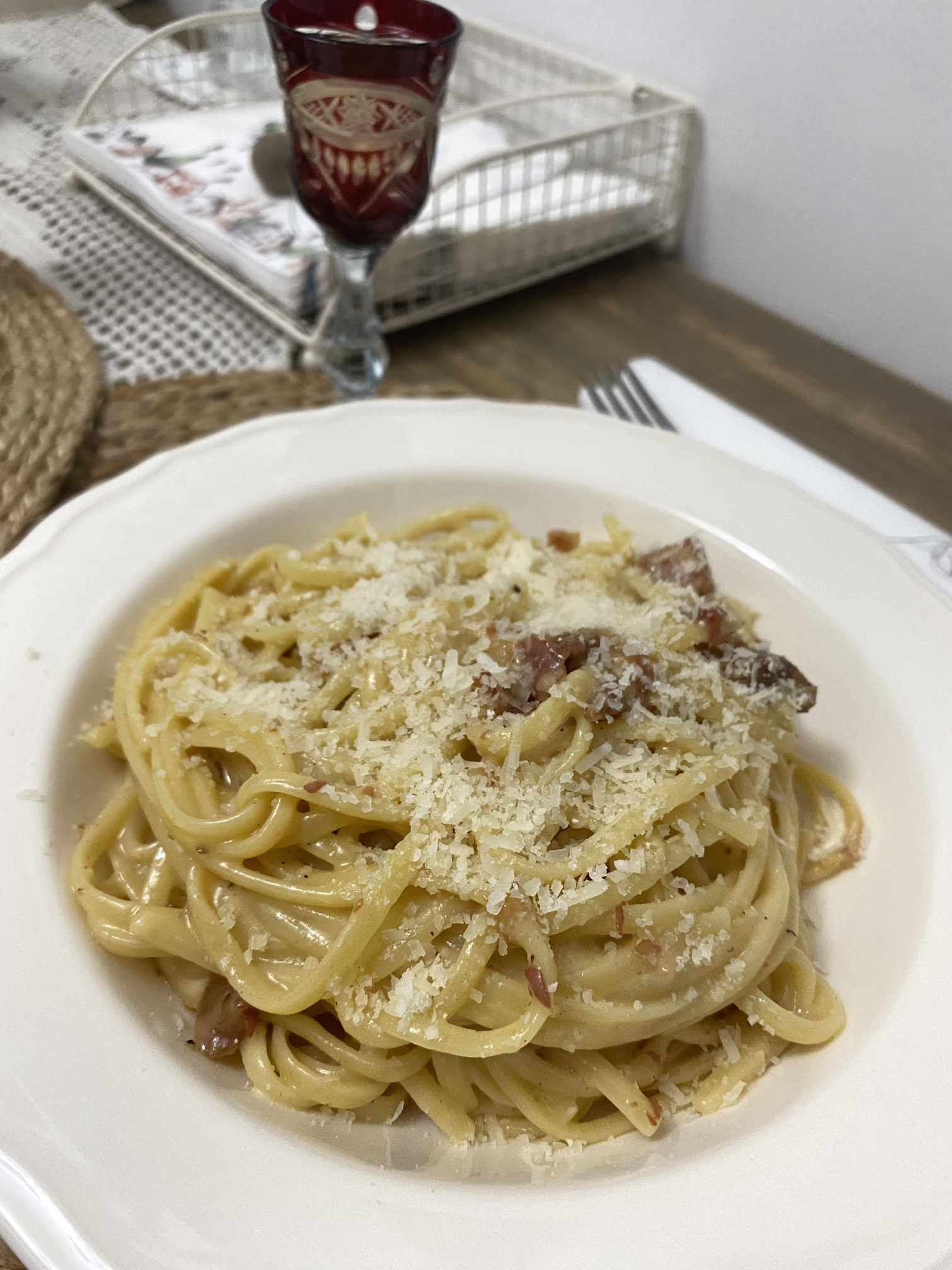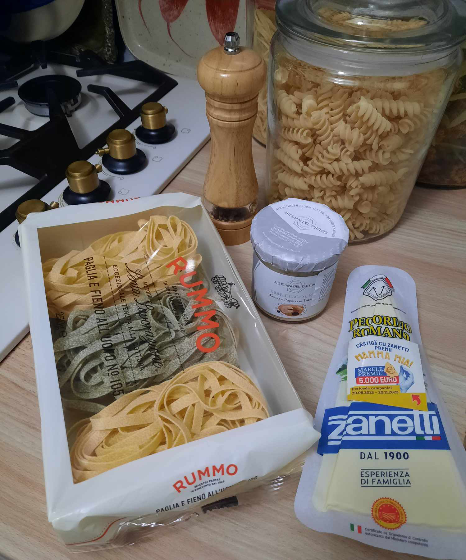 Un detaliu foarte important, consider eu, este acela că ingredientele încerc să le procur de la magazinul nostru cu produse aduse din Italia, Supermercato, sau să caut în hipermarket produse fabricate în Italia, în special pastele, sosul de roșii, brânzeturile și carnea ( guanciale, pancetta, ton) pentru că până la urmă ingredientele fac diferența în orice fel de mâncare, cu atât mai mult la pastele italiene.